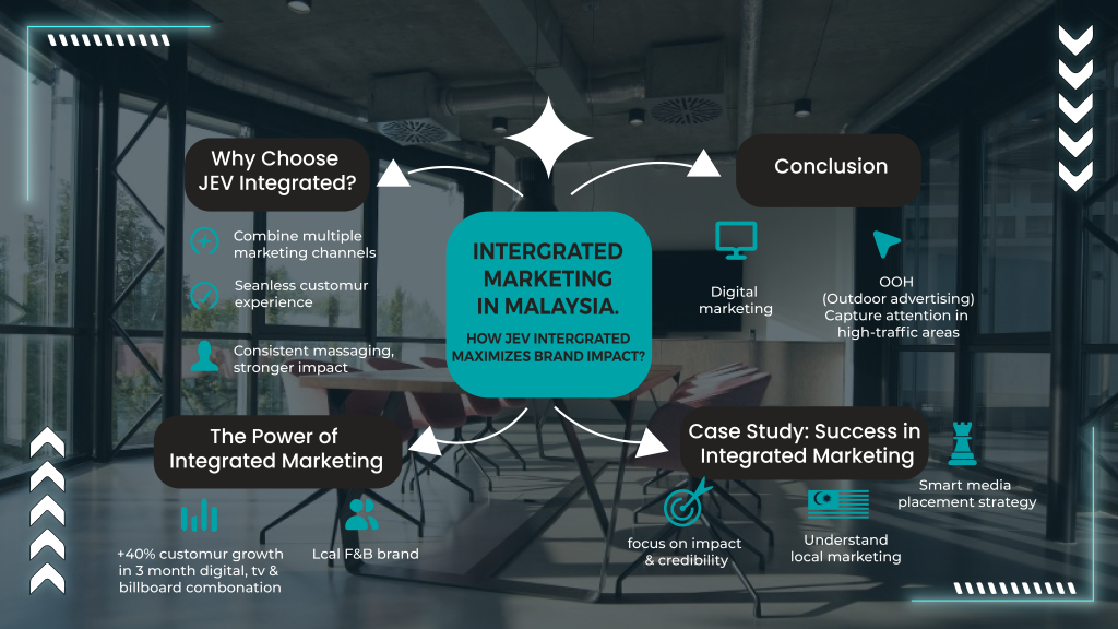 For businesses looking to thrive in Malaysia, integrated marketing is essential. JEV Integrated offers comprehensive marketing solutions that combine creativity, strategy, and data-driven insights to maximize brand impact. Contact us today to discover how we can elevate your marketing campaigns.